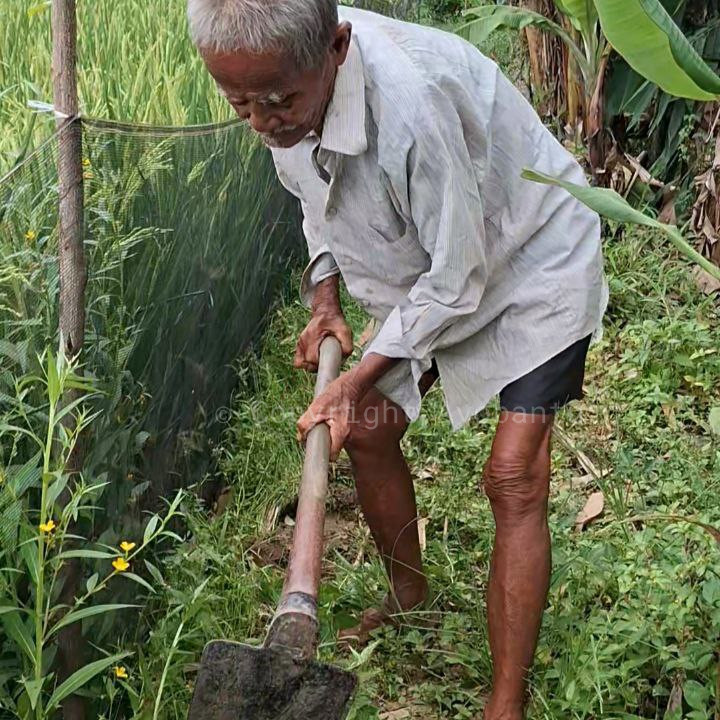 bekerja serabutan di sawah atau ladang orang lain, meski tubuhnya renta