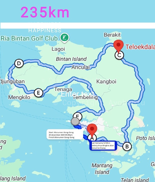 Bayangkan berlari sejauh 230 kilometer dengan naik dan turun tanjakan tinggi total 960m perkiraan waktu 2 hari 2 malam tanpa henti, menembus panas, lelah, dan sunyi jalanan. Rute yang akan ditempuh yaitu start: Monumen Gong-gong → Kijang → Kawal → Berakit → Tg.Uban → Monumen Gong-gong ( keliling pulau Bintan). Bingkie tidak melakukannya untuk rekor,bukan ingin membuktikan sesuatu, Ia berlari untuk satu tujuan: menyelamatkan nyawa.