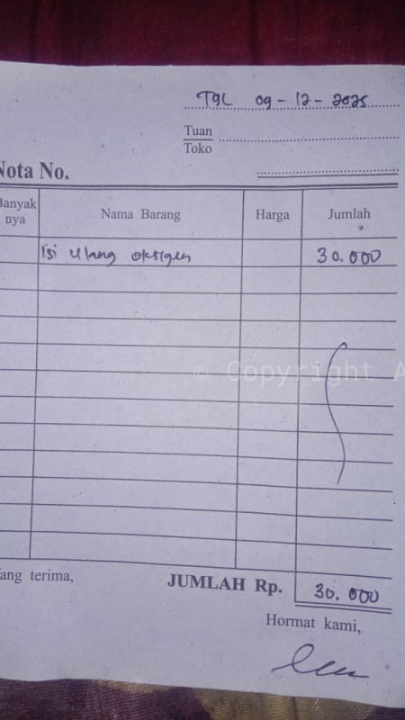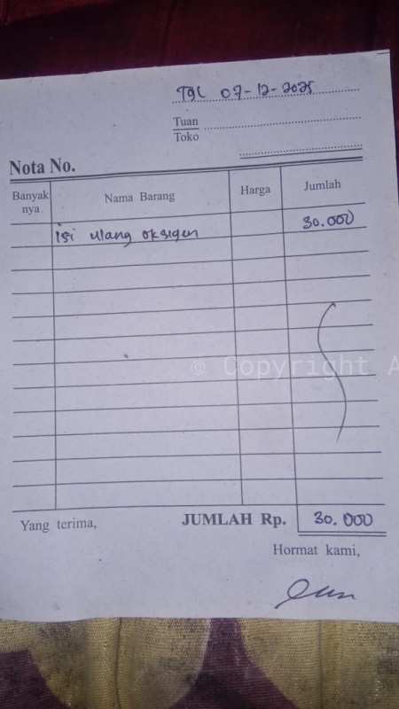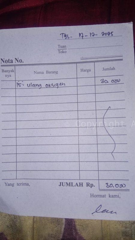 Berkat kebaikan anda semua saya bisa menjalani pengobatan dan memenuhi kebutihan isi ulang tabung oksigen..