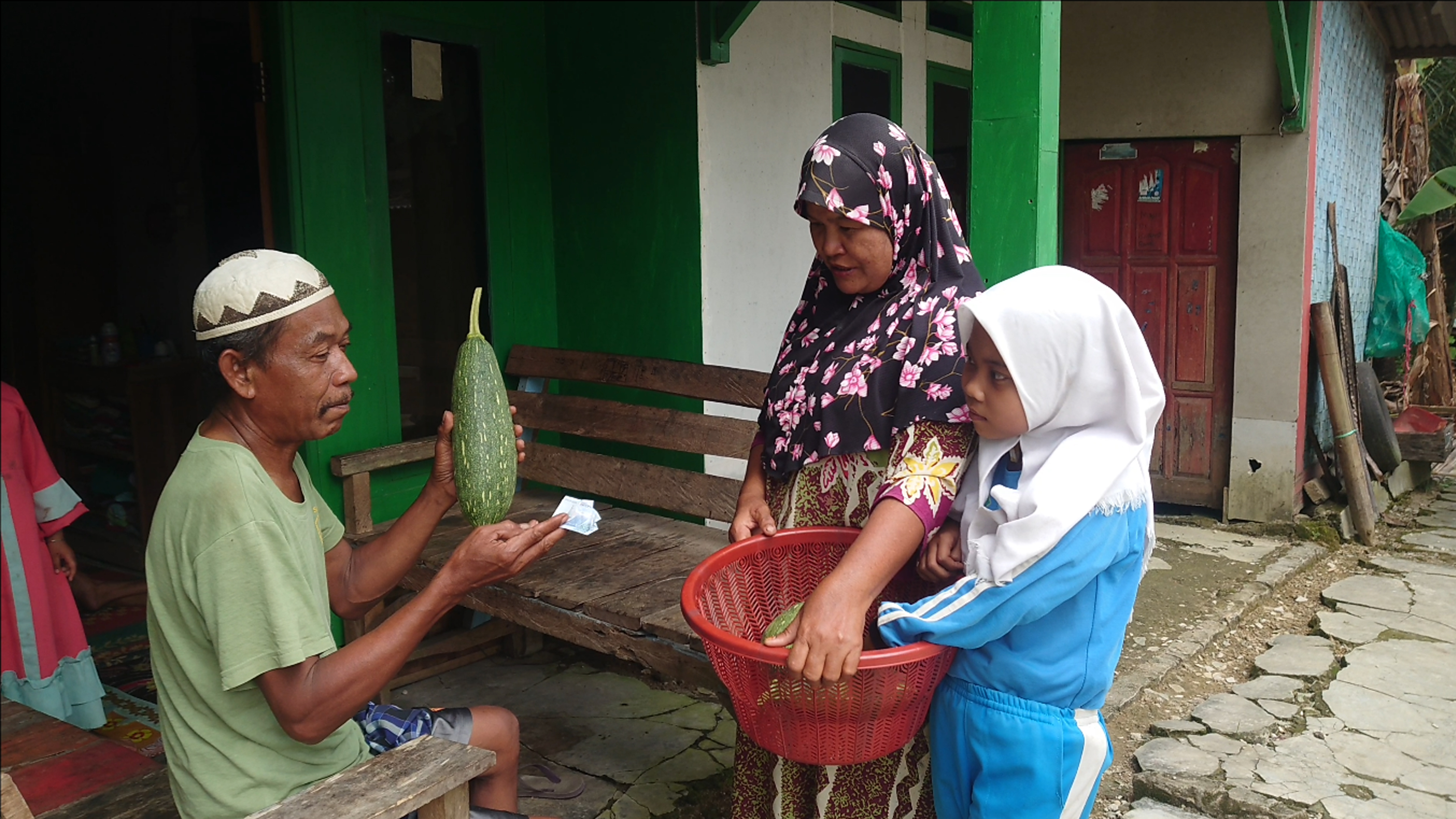 Biasanya ia keliling berjualan sayuran di sekitar rumah. Seharian yang didapat hanya 10rb. Sedangkan kakek, mencari rumput untuk pakan kambing dengan upah 15rb.