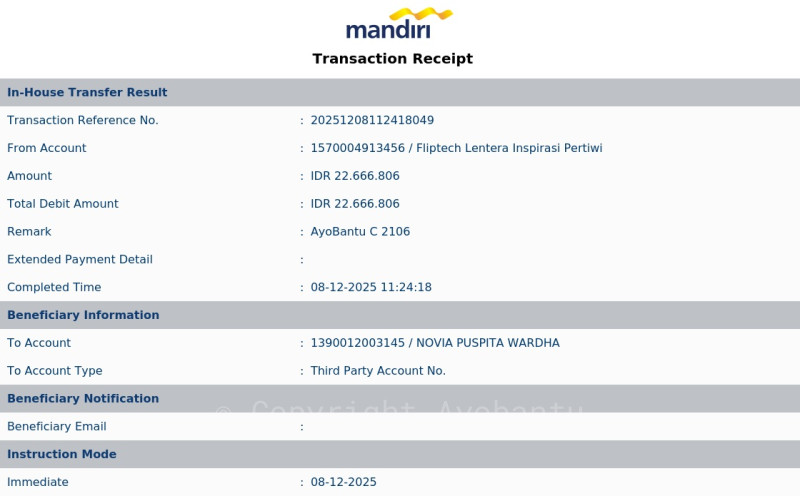 Jumlah yang telah dicairkan : Rp. 22.666.806