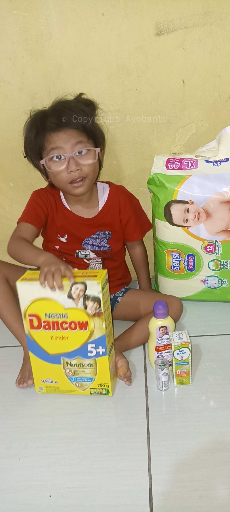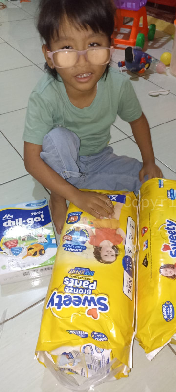 yang di deritanya. Penyaluran berupa pampers, susu, kebutuhan pokok Alifah dan