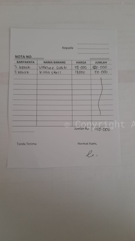 3. Supratul dan kasa steril Rp 150.000.-
