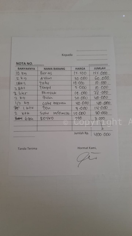 4. 1 paket sembako Rp 400.000.-