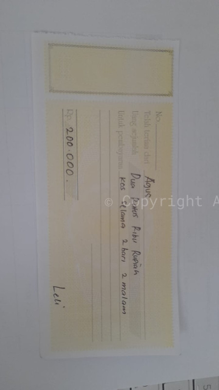 5. Biaya Konsumsi dan lain-lain selama pengobatan di Padang selama dua hari satu malam untuk dua orang Rp 300.000.-