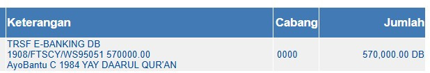 Jumlah yang telah dicairkan : Rp. 570.000