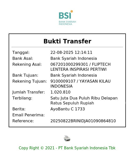 Alhamdulilah donasi dari Sahabat Baik ayobantu.com sudah kami tunaikan pada hari Rabu, tanggal 27 Agustus 2025.