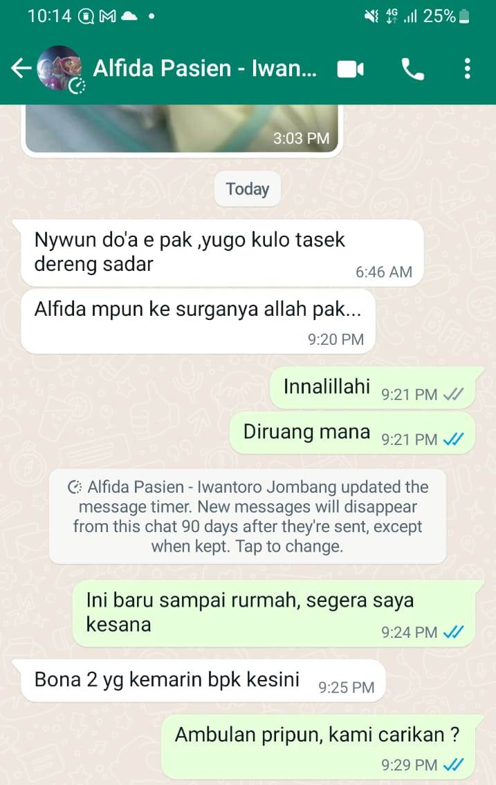 Senin 24 April kami dapat info bahwa adik Alfida lemas, dan keesokan harinya tepatnya pada hari Selasa 25 April 2023 jam 9 pagi, kami diinfokan kembali bahwa kondisi Alfida kritis.