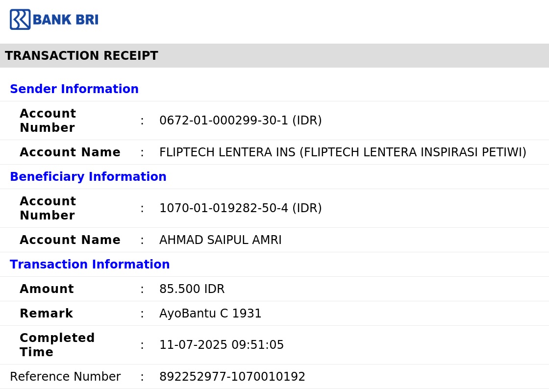 Sebelumnya saya ucapkan terima kasih banyak atas perhatian dan dukungan dari para donatur semuanya