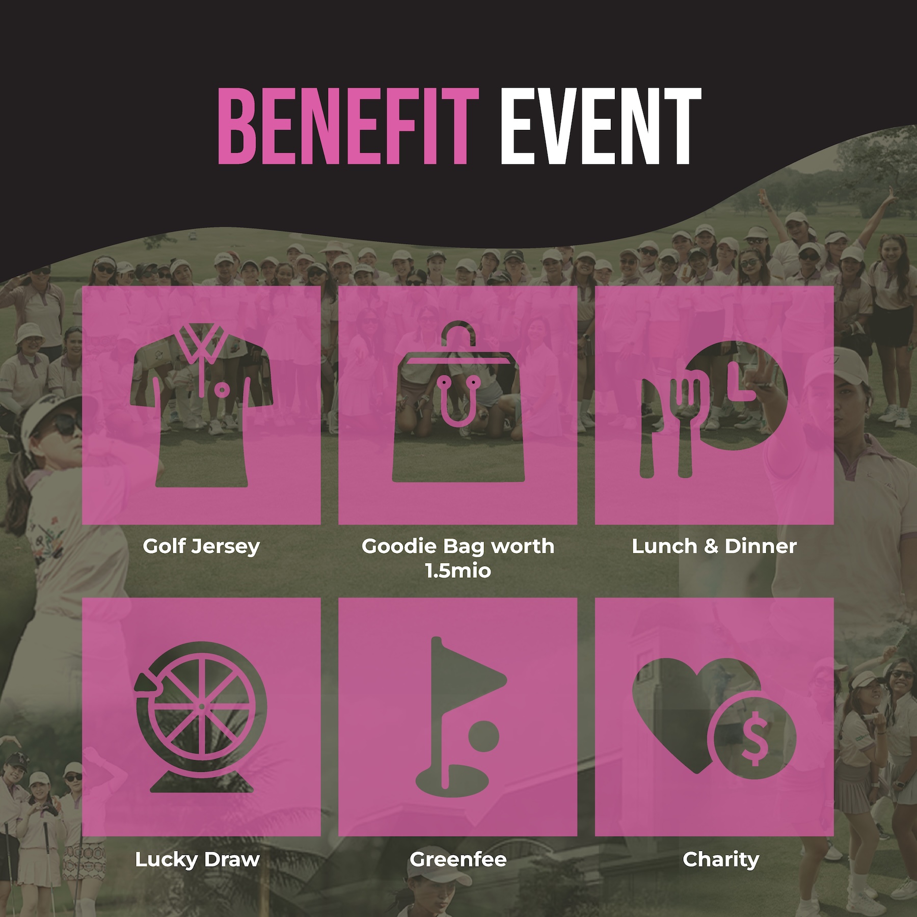 Dapatkan kesempatan memenangkan Hole in one 1 unit BMW, menikmati open bar, kesempatan lucky draw dan juga ambil bagian dalam berdonasi dan memberi dampak bagi sesama. Setiap ayunan bermakna lebih: Rp 150.000,- dari tiket peserta akan disalurkan untuk kegiatan amal, yaitu untuk anak-anak yang membutuhkan.